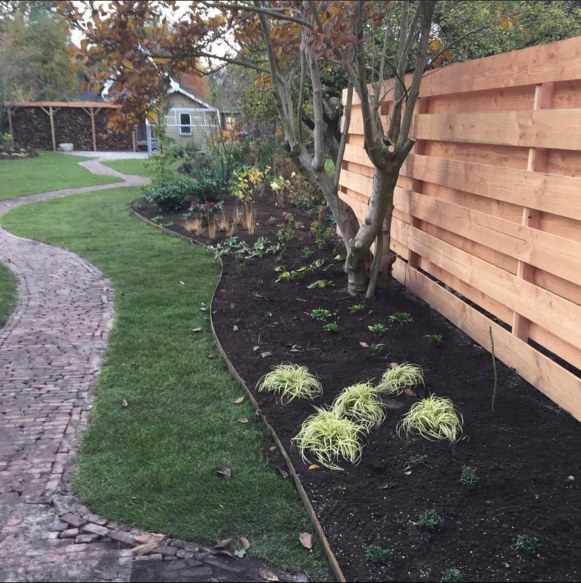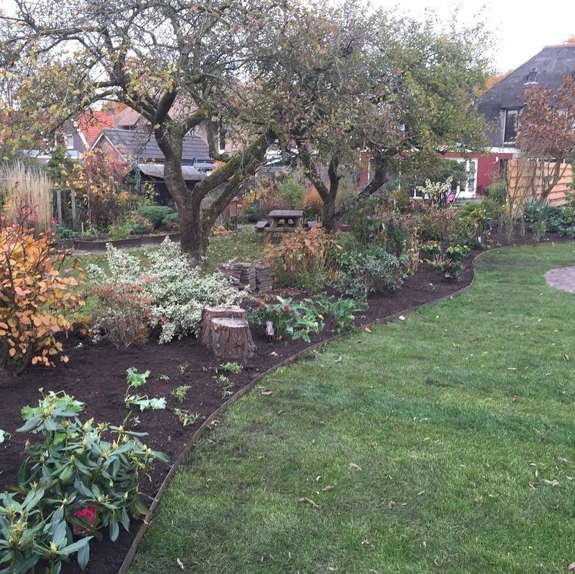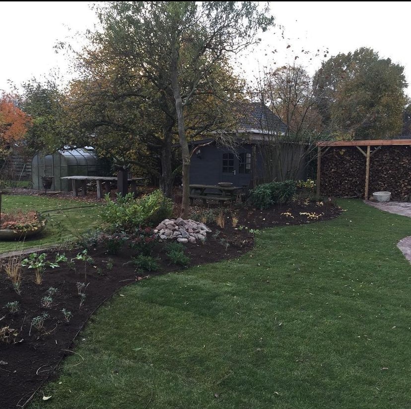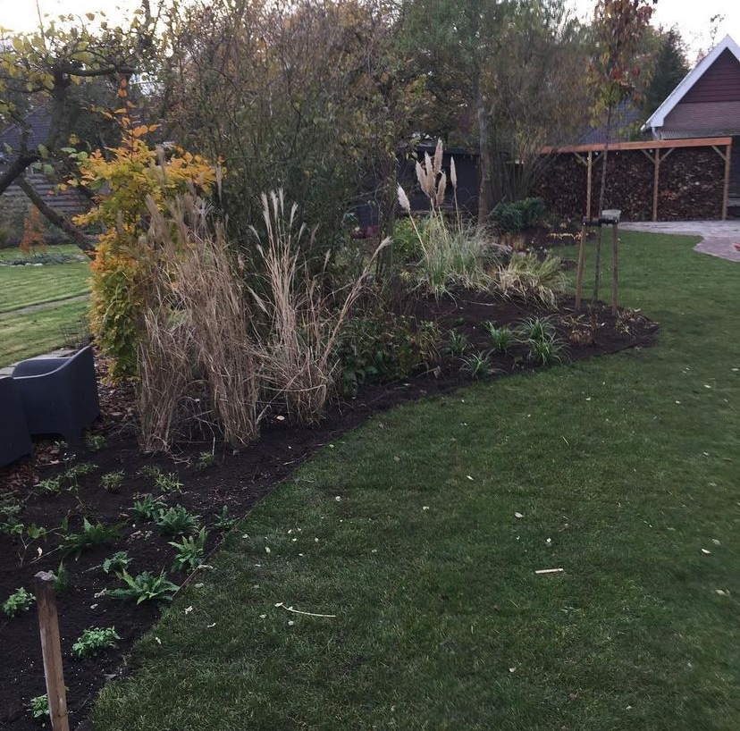 Ontwerp gedaan door John Schmitz Hovenier te Assen en door ons een beplantingsplan gemaakt. We hebben een prachtige landelijke achtertuin gecreëerd met mooie rondingen die zorgen voor een rustige sfeer. Samenwerken met hoveniers gaat ons goed af en zorgt wederom voor een tevreden klant.